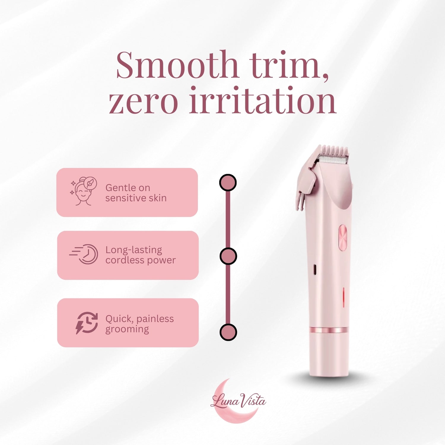 Say goodbye to razor bumps, nicks, and irritation. The LunaVista 2-in-1 Painless Electric Trimmer gives you smooth, stress-free grooming every time—designed for comfort, even on sensitive areas.